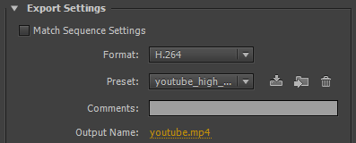 *В версии программы Adobe Premiere Pro CC 2021 при выборе Формат: H.264. Шаблон настроек: YouTube 1080p FullHD.