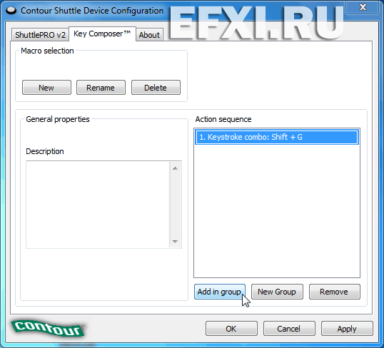 Для редактирования уже введенной команды, просто делаем двойной клик по ней в списке: Action sequence. Получаем следующий макрос: