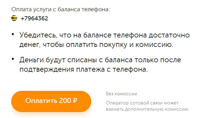 Оплата услуги с баланса телефона.
