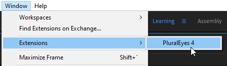 Плюрик можно найти здесь: Окно > Расширения > PluralEyes 4 (Window > Extensions > PluralEyes 4).
