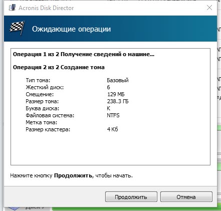 Далее, создаём том из инициализированного диска, его размер: 238.3Гб.