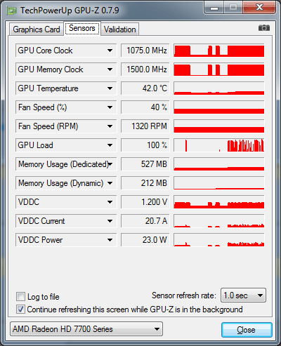 OpenGL движок плагина Magic Bullet Looks работал на видеокарте Gigabyte GV-R779OC-2GD на штатных частотах 1075/1500 МГц, загрузка ядра AMD Radeon HD 7790: 100% и 527 Мбайт видеопамяти GDDR5.
