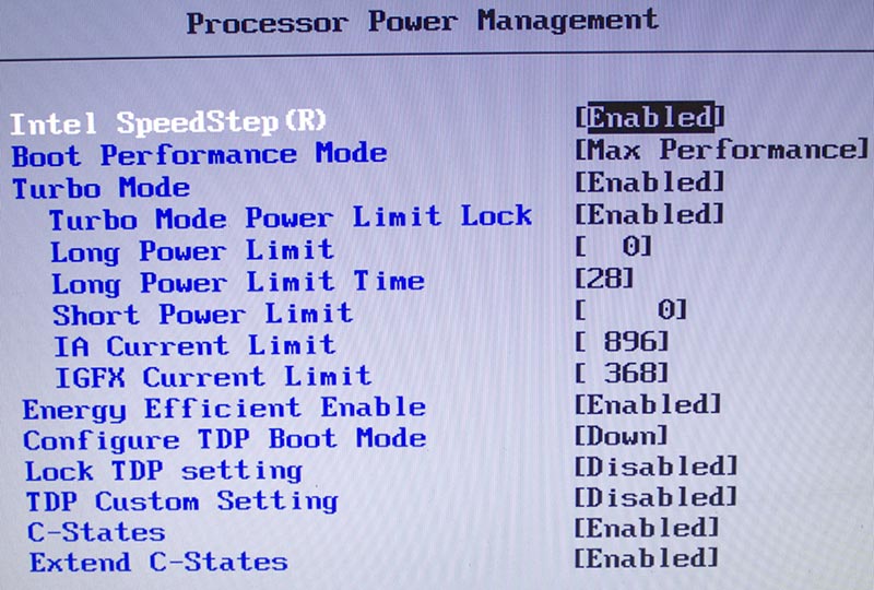 Прокручиваем страницу Processor Power Management вниз: C3-State (Enabled), C6-State (Enabled), C7-State (Enabled), C7s-State (Disabled), C7r-State (Disabled), C-State Auto Demotion (C1 and C3), Cpu C1C3 UnDemotion Enable (Enabled).