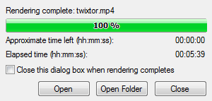 Полученный результат рендеринга (с использованием видеокарты Palit GeForce GTX 770 JetStream (NE5X770H1042-1045J) ) линейки времени: 5 минут и 39 секунд.