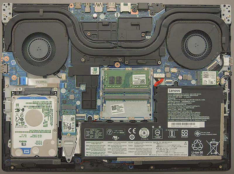 3-секционная встроенная литий-полимерная аккумуляторная батарея L17M3PG1: 52,5 Вт/ч, 4510 мА/ч. АКБ не съёмная (надо разбирать ноутбук).